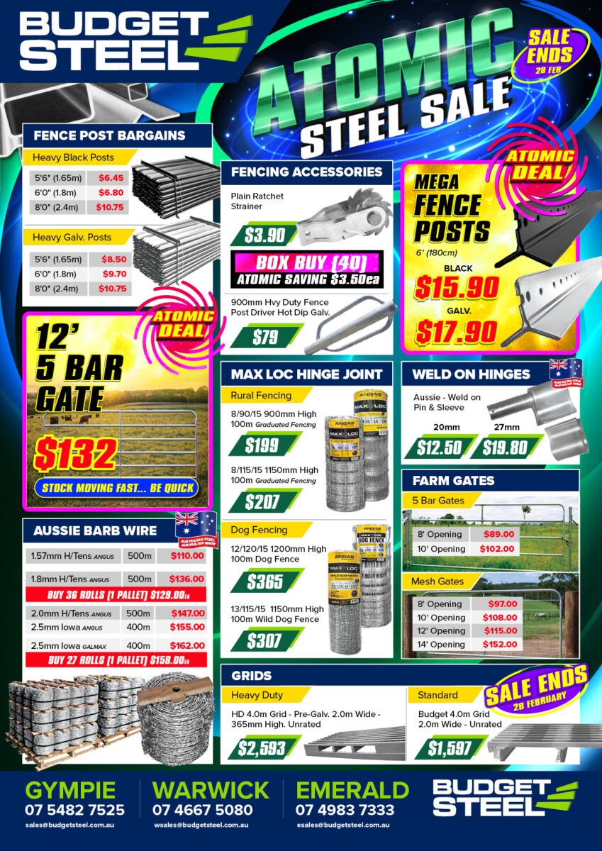 Welcome to our Current Specials Page! Here you’ll find all the latest New and 2nds Steel, Weldmesh, Fencing, Livestock Equipment, Building Products and Shed Specials! We regularly have Sales throughout the year, along with monthly specials featuring great prices!